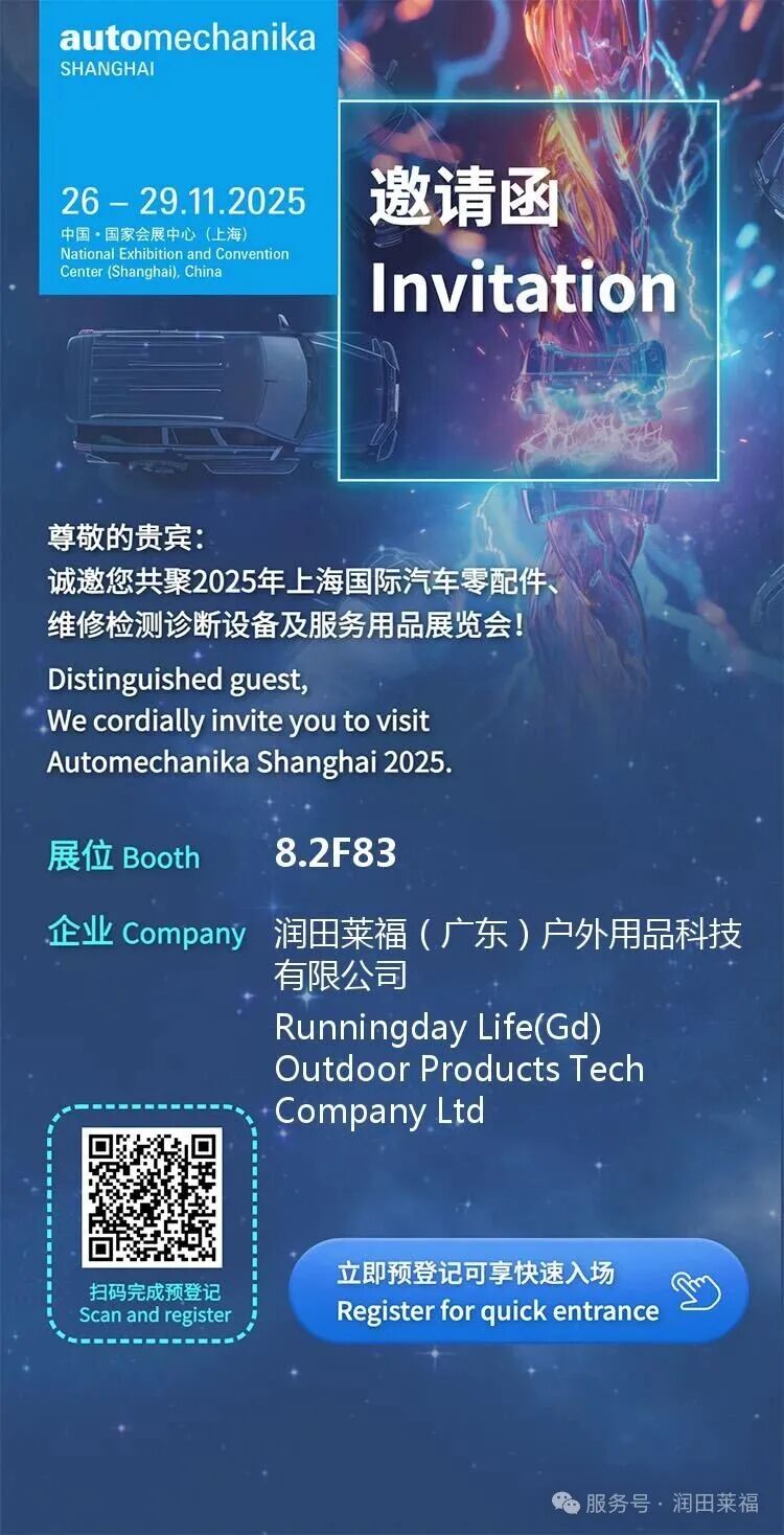 2025上海法兰克福汽配展(Automechanika Shanghai)将于11月26-29日在国家会展中心(上海)举行,届时,润田莱福将携全线新品亮相,诚邀您莅临参观、洽谈。