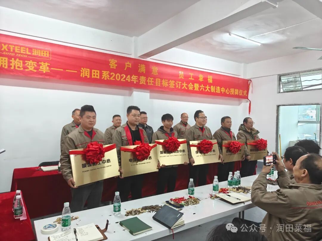 六大制造中心责任目标签订和授牌仪式,标志着公司在2024年的战略规划和管理重心。这次活动为各制造中心明确了责任目标,奠定了明确的发展路径,并通过授牌仪式正式认可了各中心在润田系整体战略中的关键角色。
