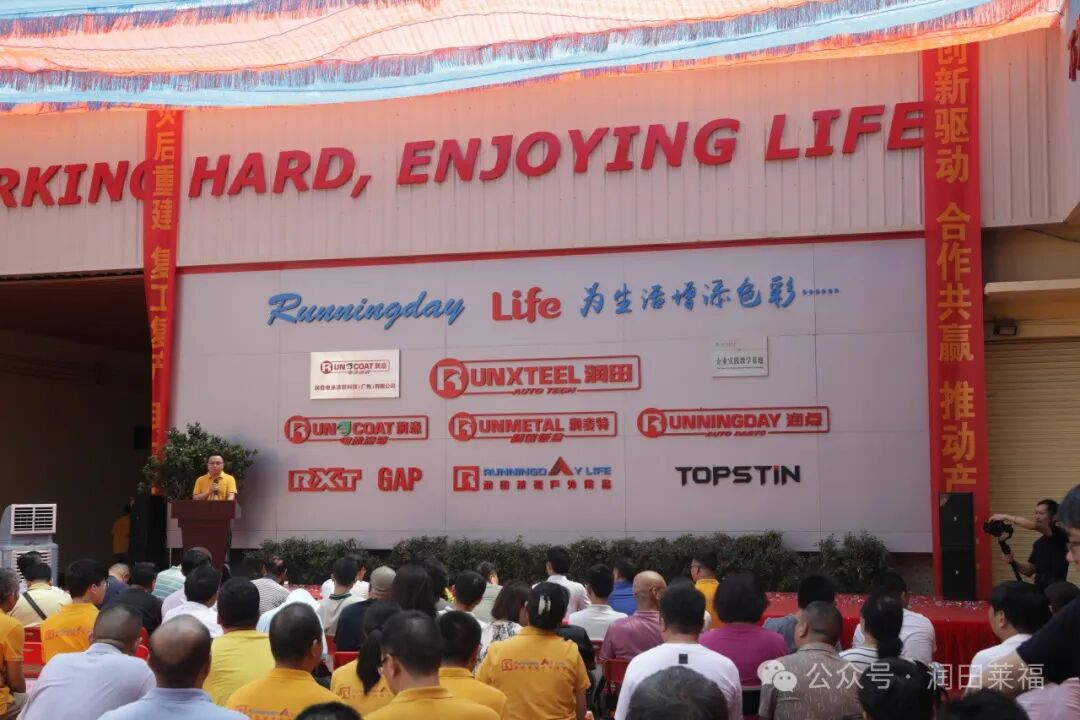 开业仪式上,广州润田汽车科技有限公司总经理杨钇先生为在座嘉宾介绍电泳工程后,电泳线揭牌仪式正式举行。
